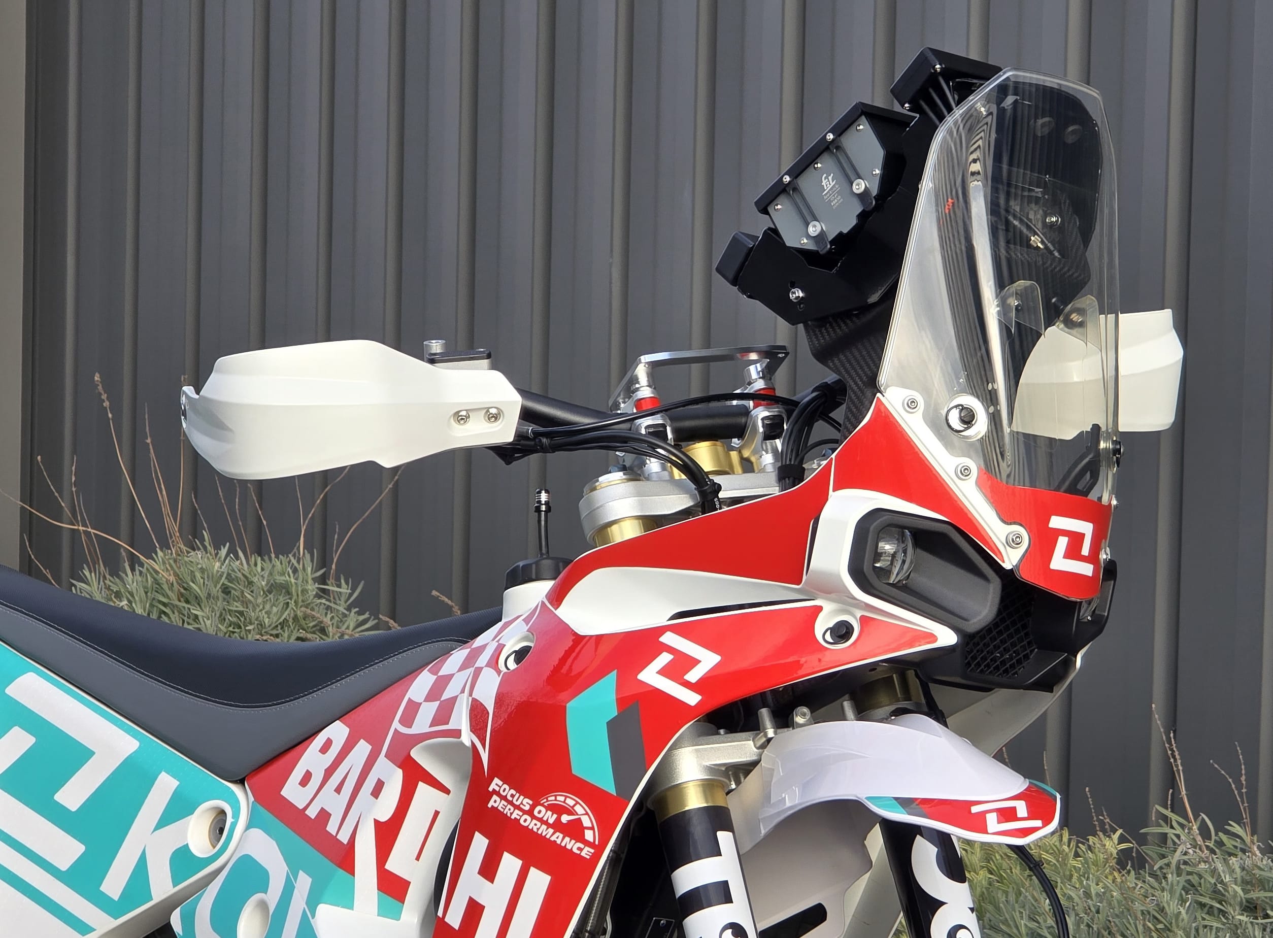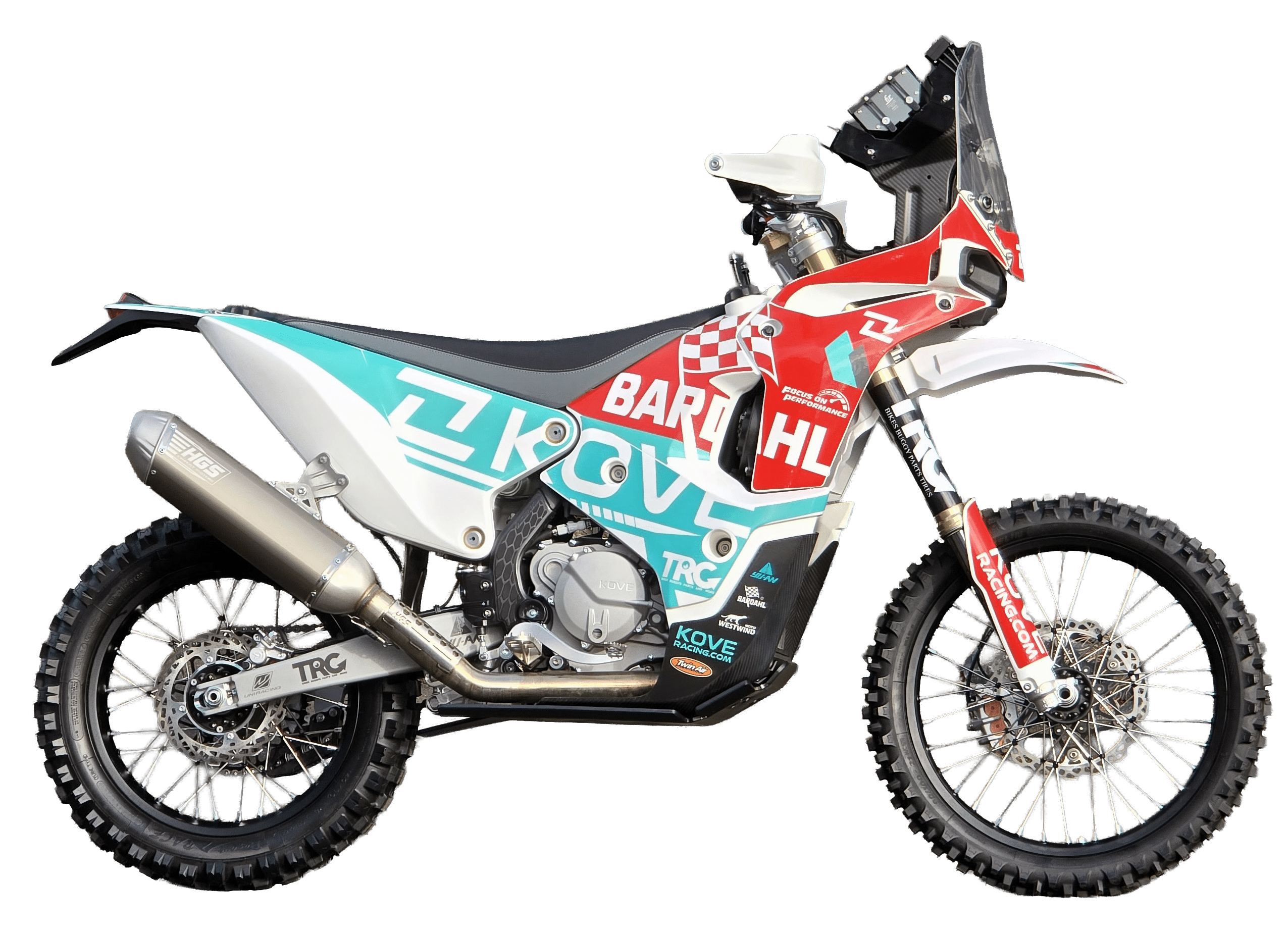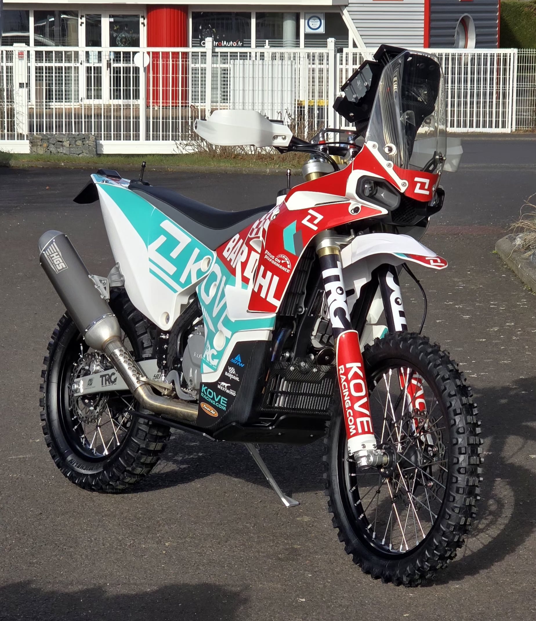 Nous partons du modèle Kove 450 Rally standard, en sélectionnant les pièces Factory de l’usine Kove et des pièces développées en Europe plus performantes. Grâce à notre expérience en rallye sur ce modèle, nous avons pu développer des pièces performantes.