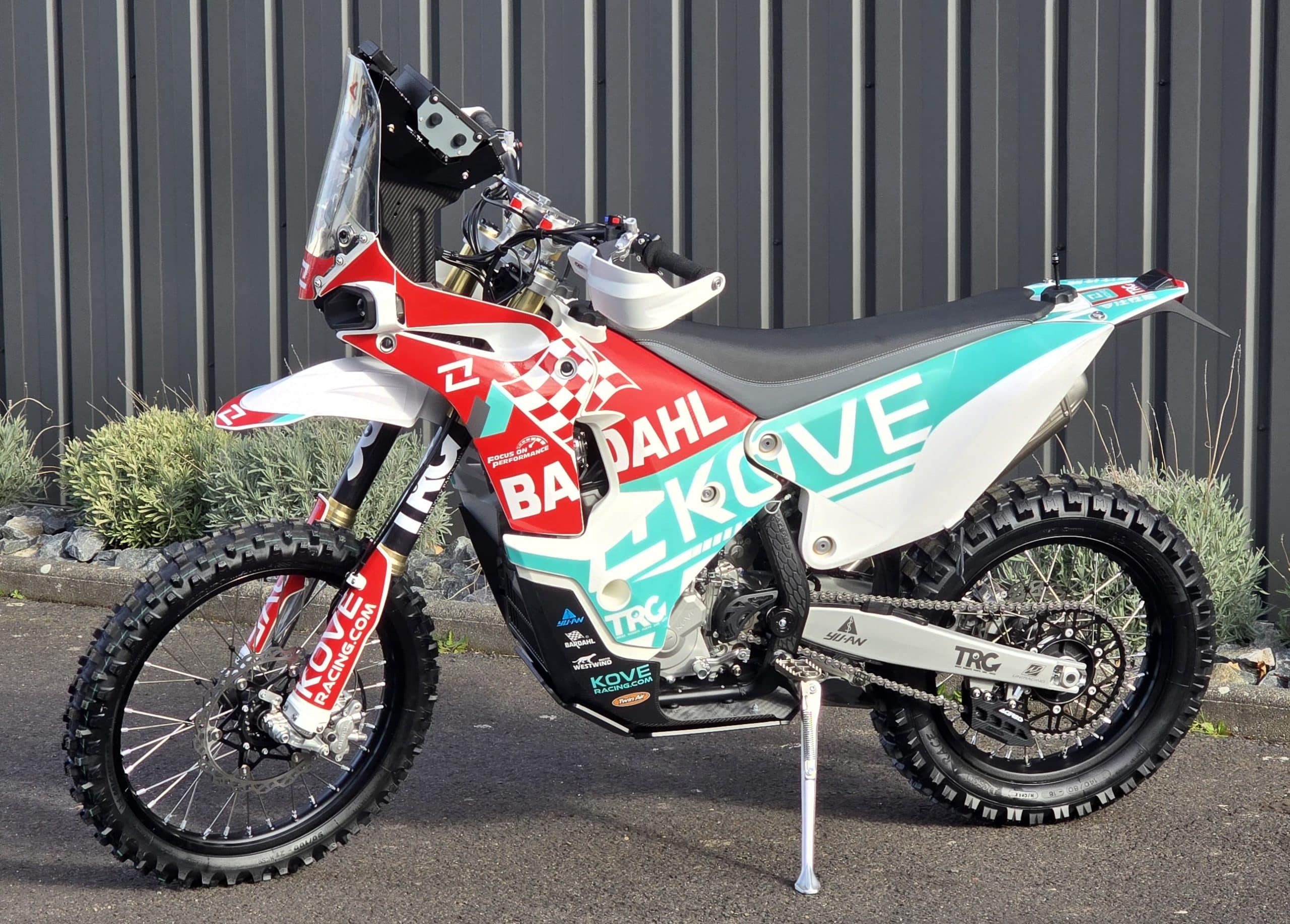 La KOVE 450 Rally Factory TRC s’adresse aux pilotes recherchant une machine orientée compétition, développée à partir de la base homologuée KOVE et optimisée grâce à une véritable expérience rallye. Assemblée à la carte avec des composants Factory sélectionnés et des pièces développées en Europe, cette version bénéficie d’une préparation réalisée par le chef mécanicien du team rally officiel KOVE, pour offrir un niveau de performance, de fiabilité et d’adaptation supérieur selon les exigences de chaque épreuve.