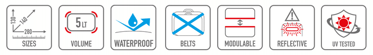 • 840D Nylon TPU (double couche). Résistant aux déchirures, soudés à haute fréquence, sans coutures pour garantir une imperméabilité maximale