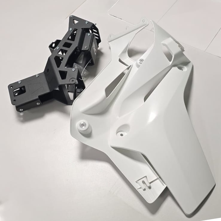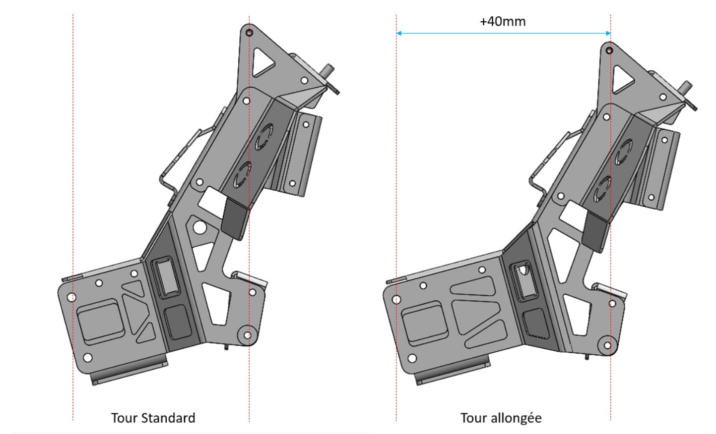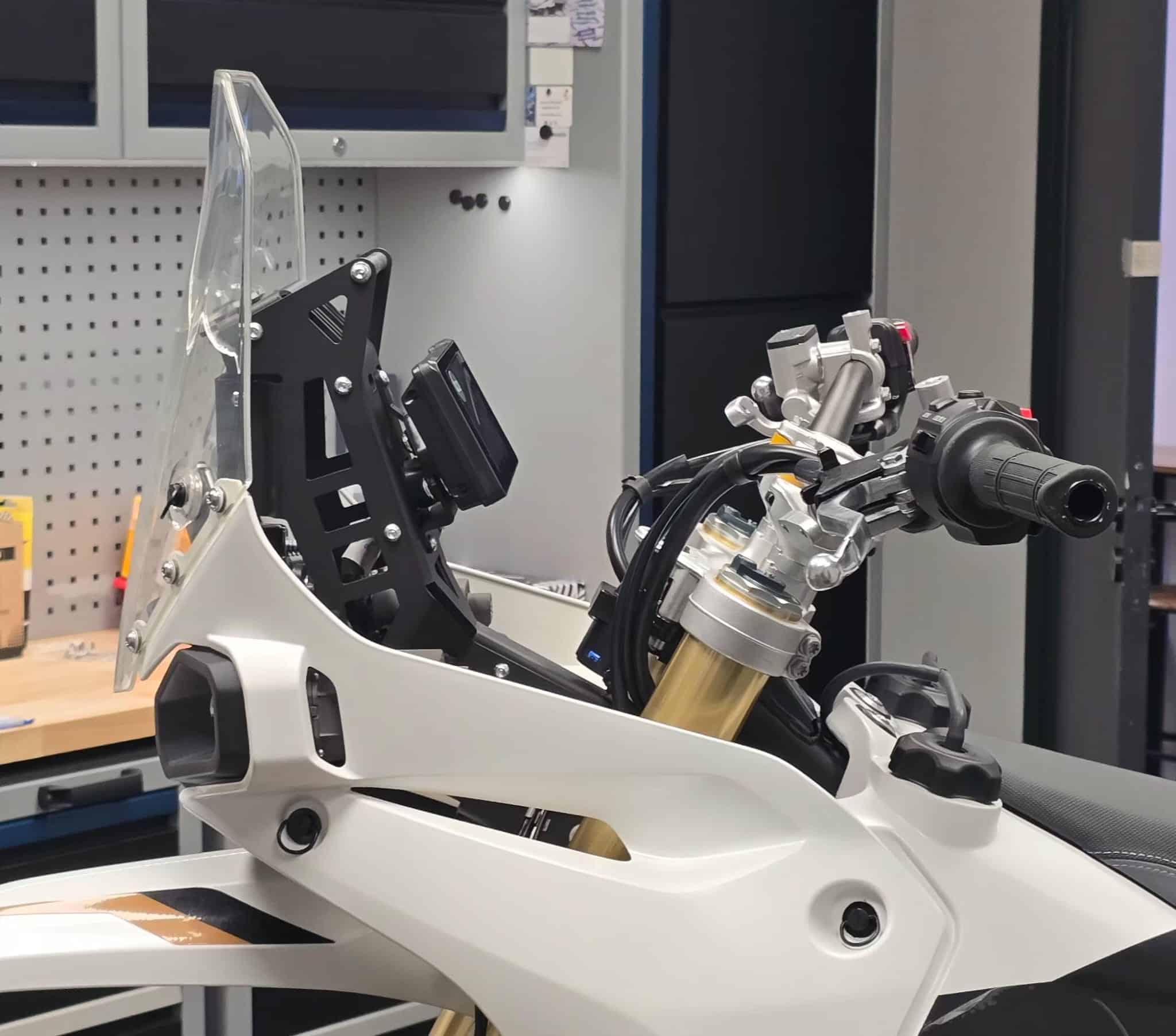 Kit comprenant une tour de rallye / tête de fourche allongée (+4 cm) et des carénages plus longs (2x) pour avoir plus de place pour la tablette ou le road book.